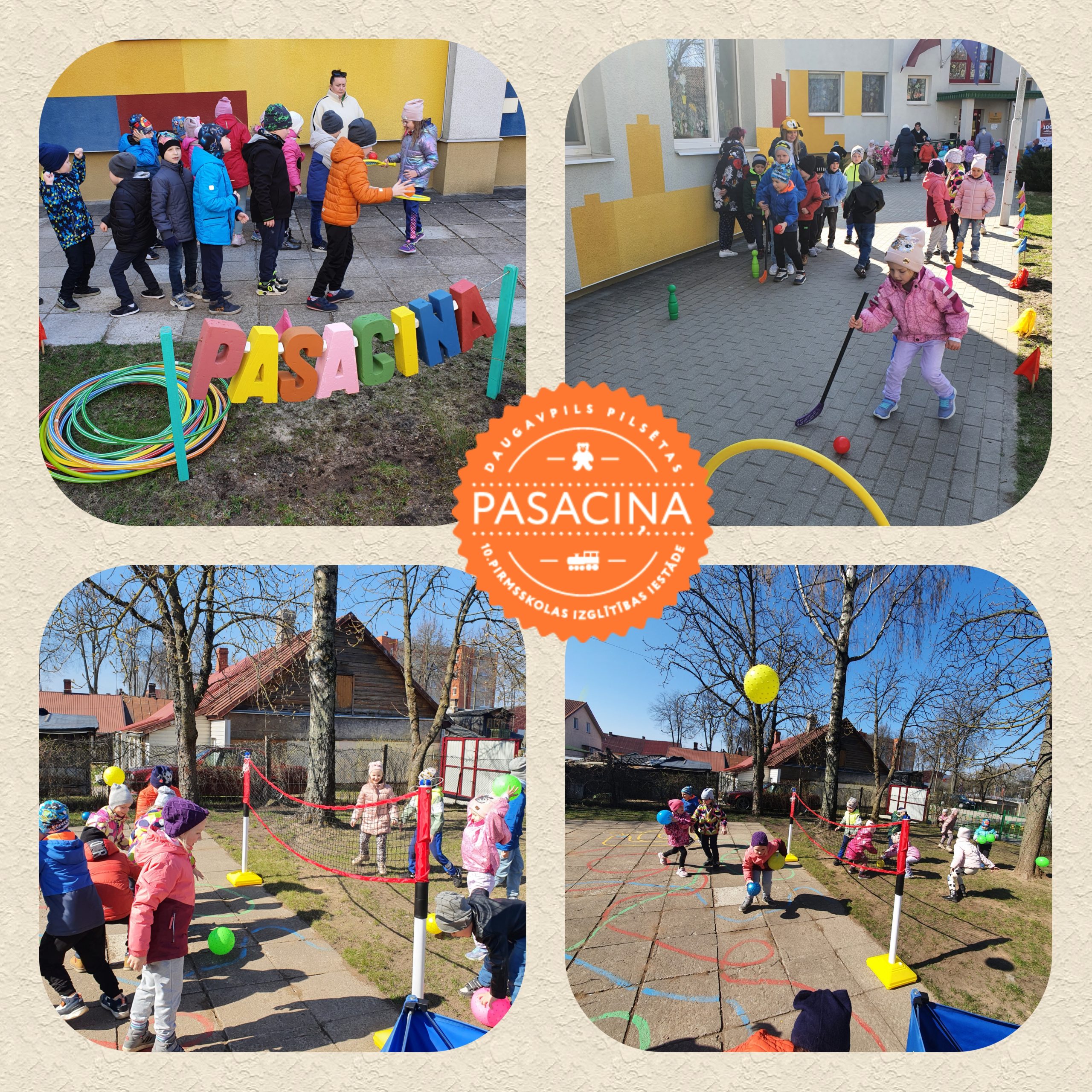 Pēc tām notika sporta aktivitātes svaigā gaisā iestādes teritorijā ar trīs vecumgrupu audzēkņiem ( 4-5 g., 5-6 g., 6-7 g.)