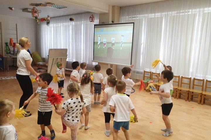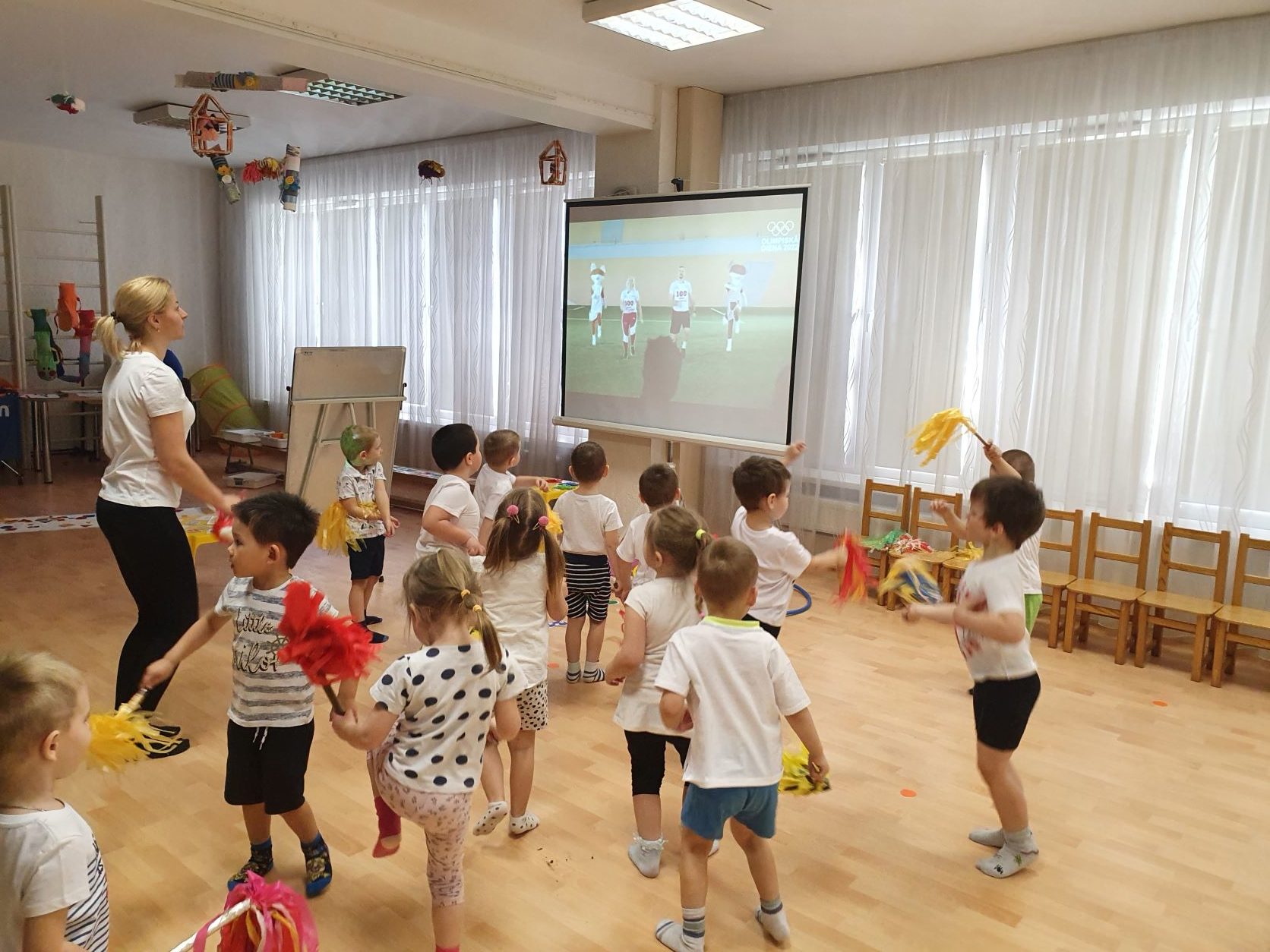 Kopīgā vingrošanā aktīvi piedalījās mūsu iestādes 5-6 g. un 6-7 g. audzēkņi kopā ar iestādes darbiniekiem.