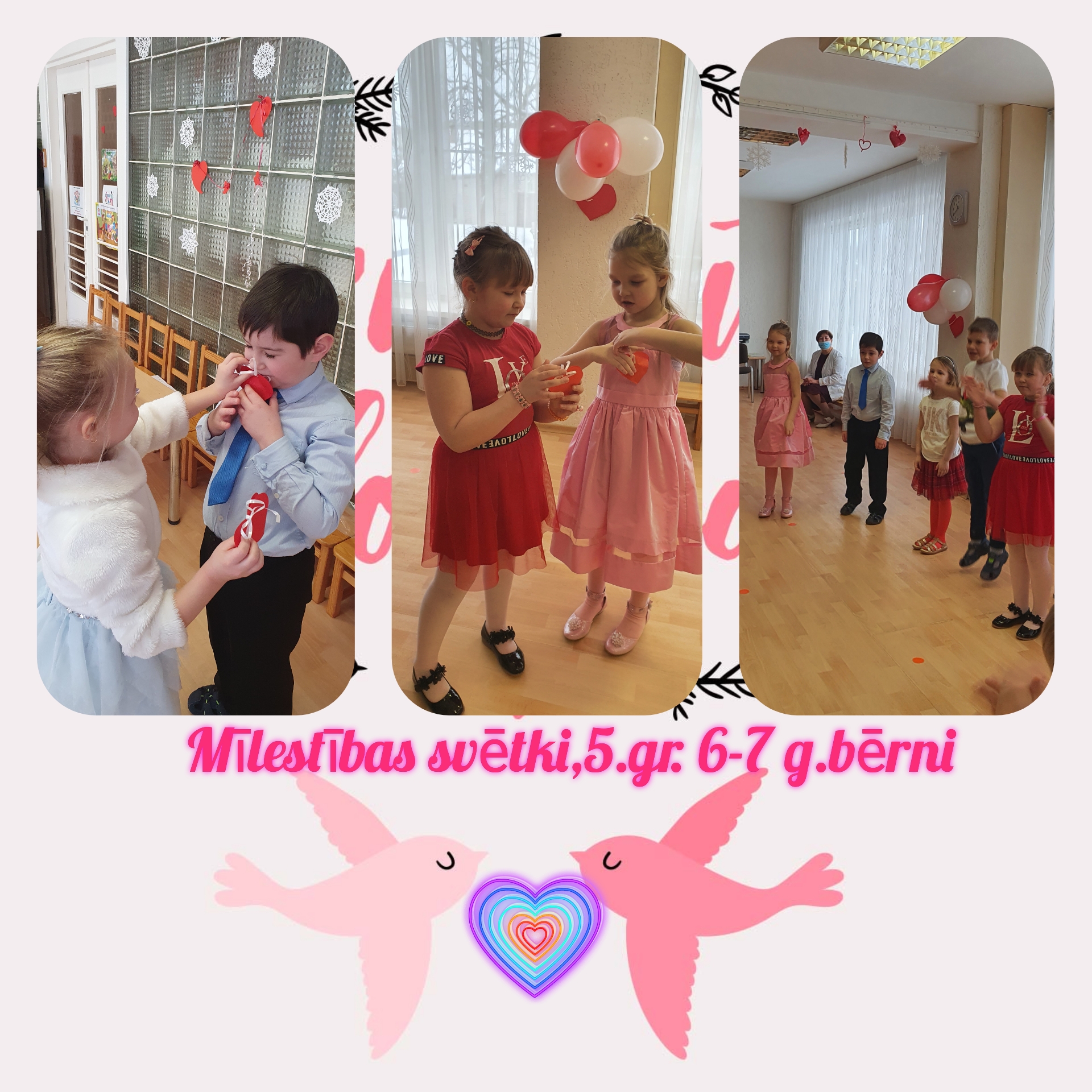 15.februārī 3. un 5. grupas audzēkņi svinēja ,,Draudzības dienu”. Visiem bija labs un jautrs garastāvoklis. Bērni novēlēja viens otram sirsnīgus un pieklājīgus vārdus (APU- programma atbalsts pozitīvai uzvedībai ), stāstīja un dziedāja par draudzību. Salika un zīmēja Valentīna dienas simbolu – sirsniņu. Svētku gaitā mūsu audzēkņi ievēroja 10. pirmsskolas iestādes APU noteikumus. Protams, mūsu svētkos bija jautras dejas ar bērnu paštaisītām sirsniņām , jautras stafetes, konkursi .Bērnus gaidīja arī pārsteigumi- gaisa baloni ar šokolādes sirsniņu iekšā un sirsniņas ar saldu cienastu.