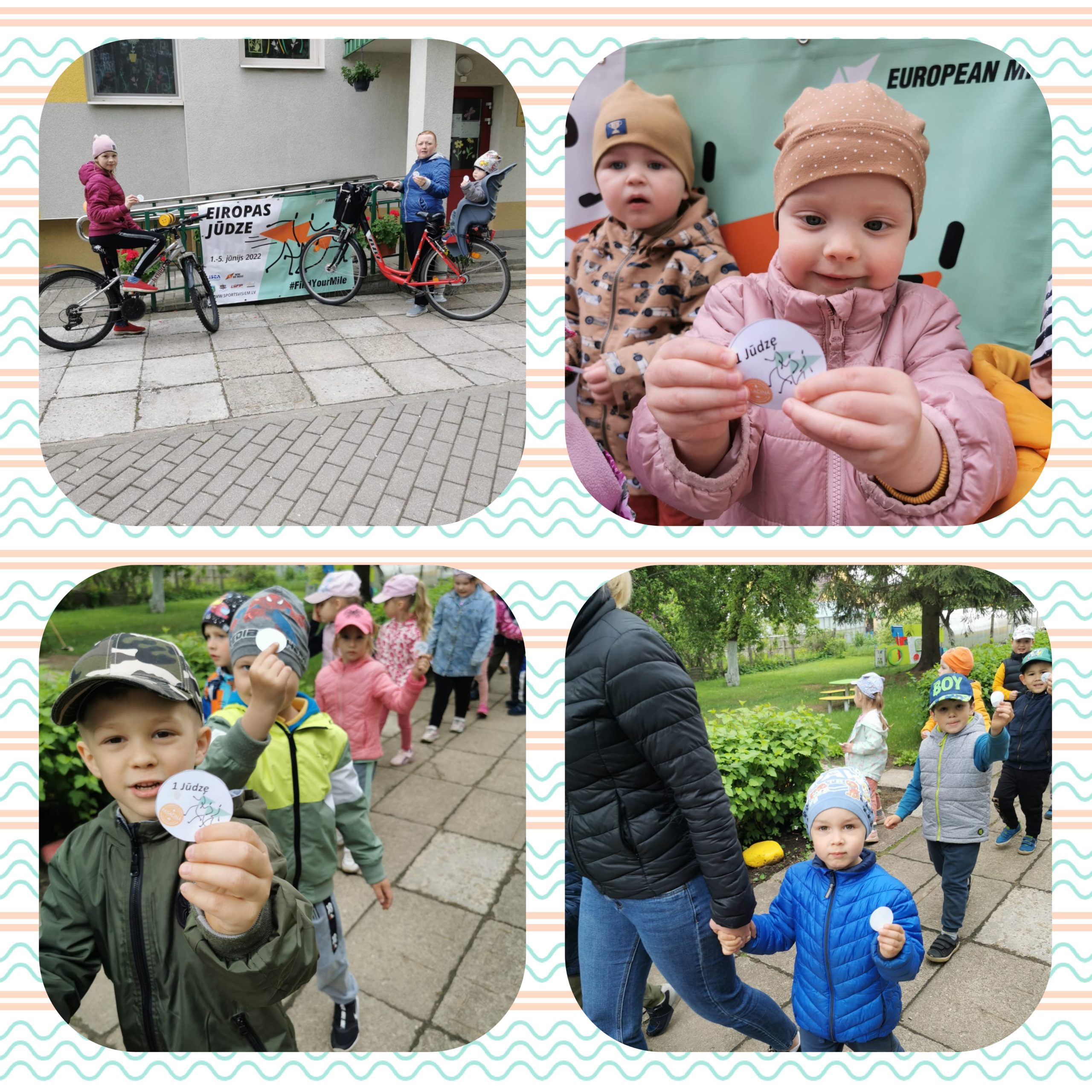 Laika posmā no 1. jūnija līdz 05.jūnijam Latvijas pirmsskolas izglītības iestādes tika aicināti piedalīties pasākumā ,,EUROPEAN MILE” – EIROPAS JŪDZE. Pasākumu Latvijā koordinē Latvijas Tautas sporta asociācija. Pasākuma dalībnieki ir pirmsskolas izglītības iestāžu audzēkņi, grupu skolotājas, PII personāls , audzēkņu vecāki.