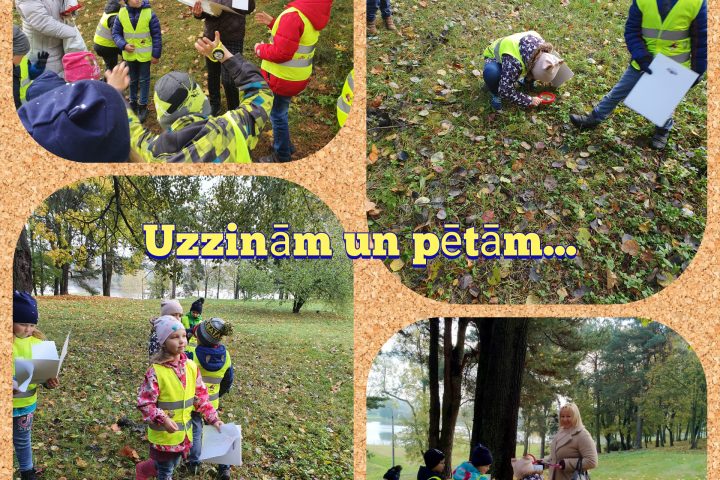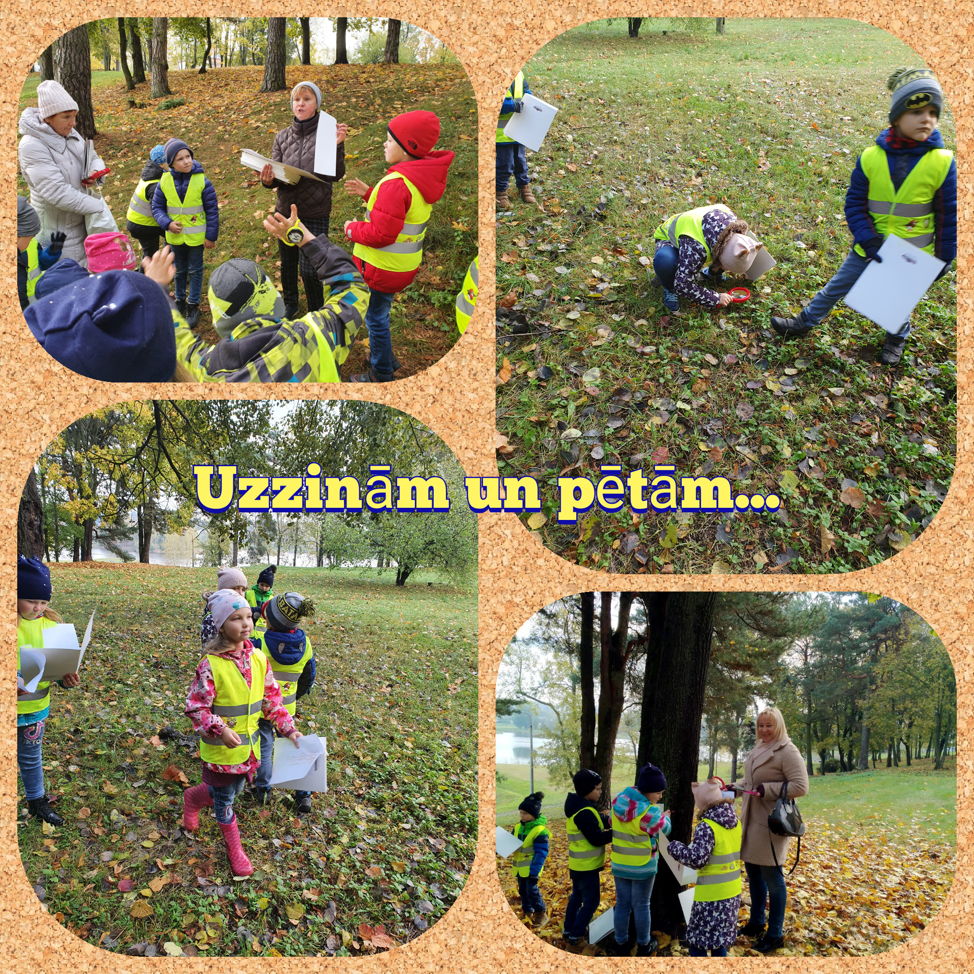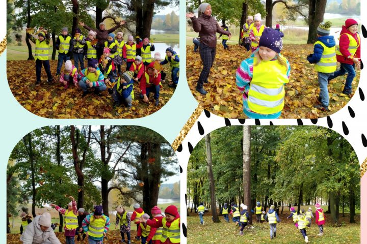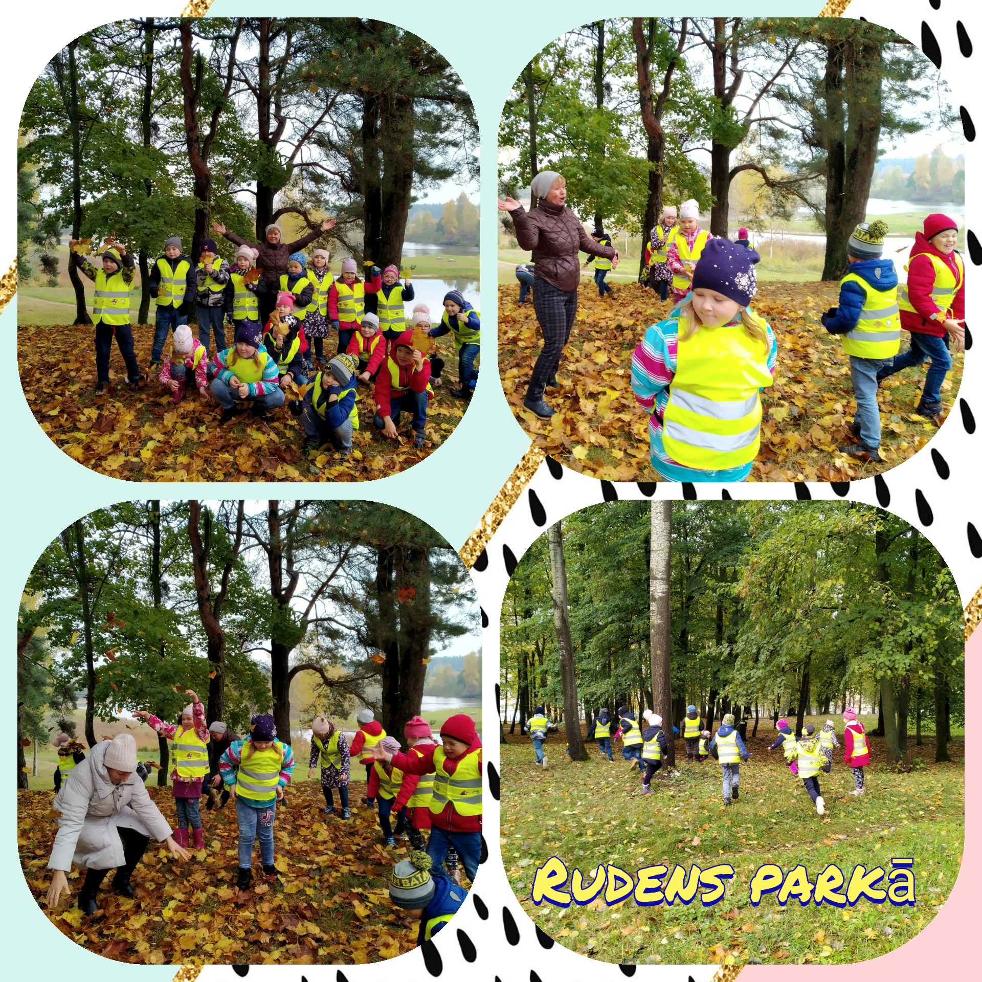 Bērni labi izkustās mācību rotaļas gaitā ,,1, 2, 3- kokam pieskaries”. Šī rotaļa palīdz bērniem iemācīties koku nosaukumus. Ekskursijas beigās spēlējāmies ar nokritušajām lapām un uztaisījām “Rudens lapu salūtu”.