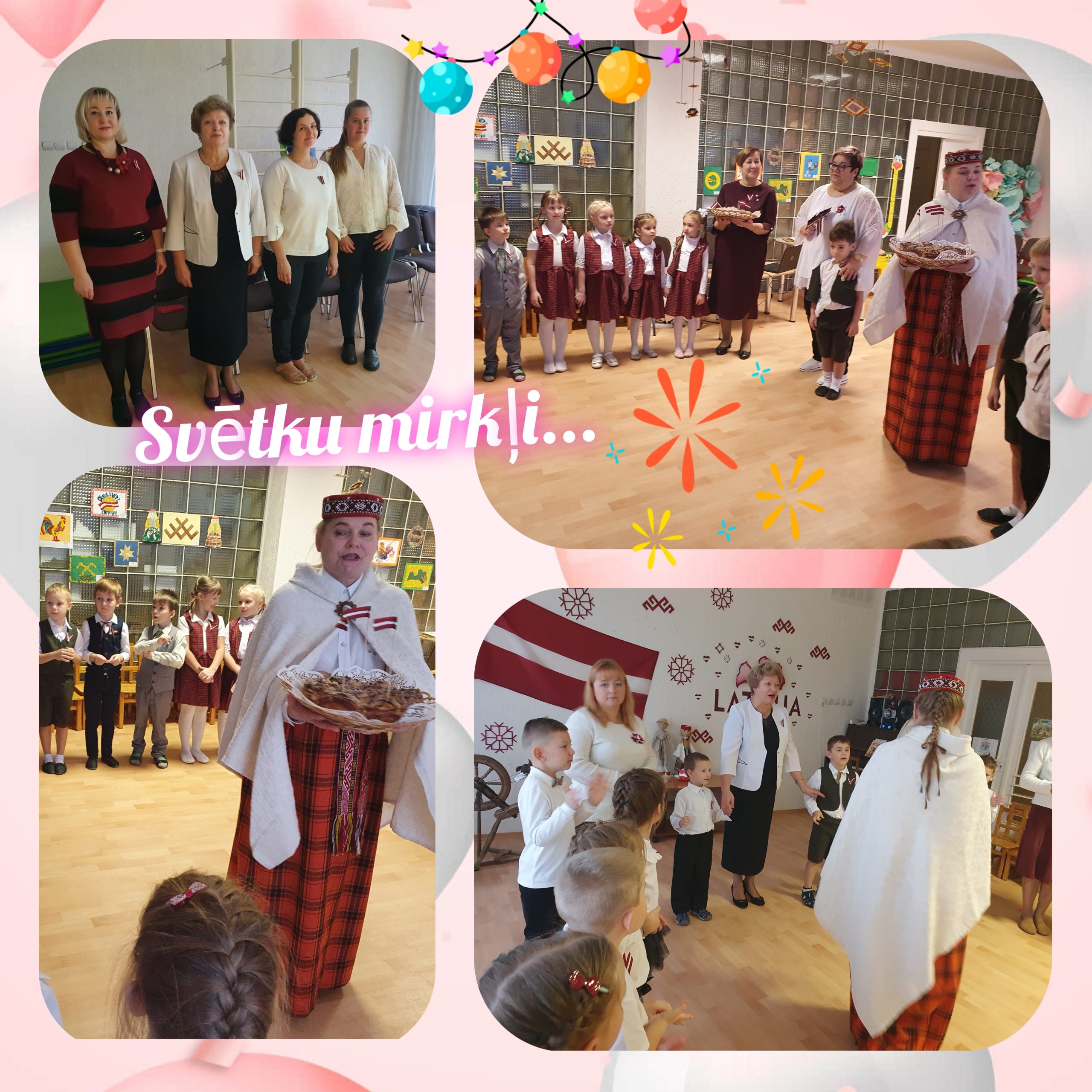 - Novembra svētki ar tēmu ,,Es- manai Latvijai” tika pavadīti ar latviešu tautas dziesmu skanējumu, dzejoļu skaitīšanu un savas piederības valstij aktualizēšanu. Bērni uzzināja daudz jaunu faktu par savas valsts simboliem, to rašanos un nozīmi, lasīja leģendas par Latviju, iepazinās ar latviešu tautas tradīcijām, ceļoja pa Latvijas karti un iepazinās ar Latvijas dabu. Kopā ar tautu meitu tika izdejoti un izspēlēti latviešu tautas dejas un rotaļas. Nobeigumā skanēja latviešu grupas ,,Bermudu divstūris” dziesma ar nosaukumu „Sarkanbaltsarkanais” un notika zibakcija ar karodziņiem, kurā laikā visi dziedāja , dejoja un priecājās.
