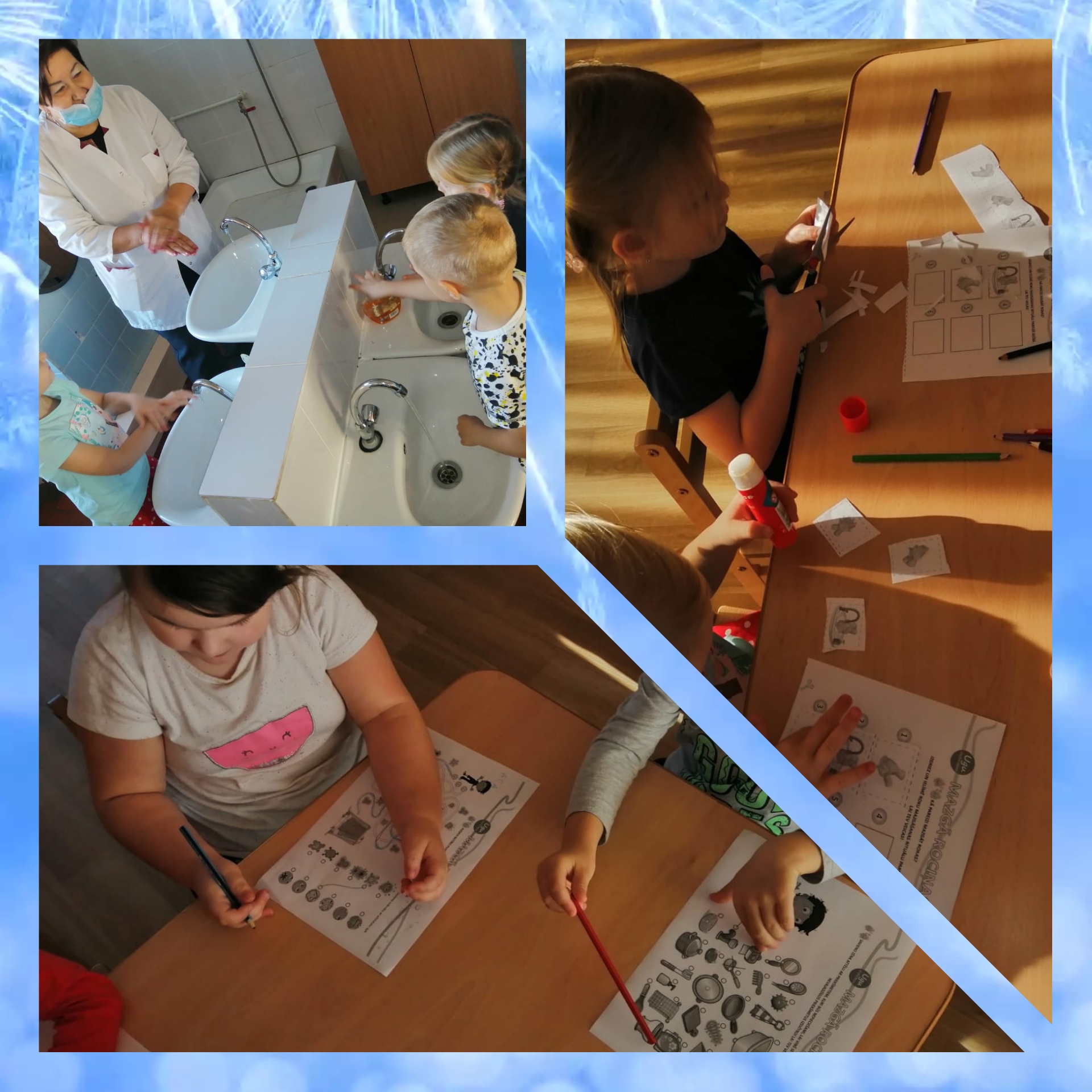 Grupiņās tika rīkotas integrētas nodarbības. Ar bērniem tika pārrunāts par roku mazgāšanas nozīmi un lietderību, nostiprināts roku mazgāšanas algoritms. Eksperimentējot, bērni uzzināja: kā ziepes iedarbojas uz mikrobiem.