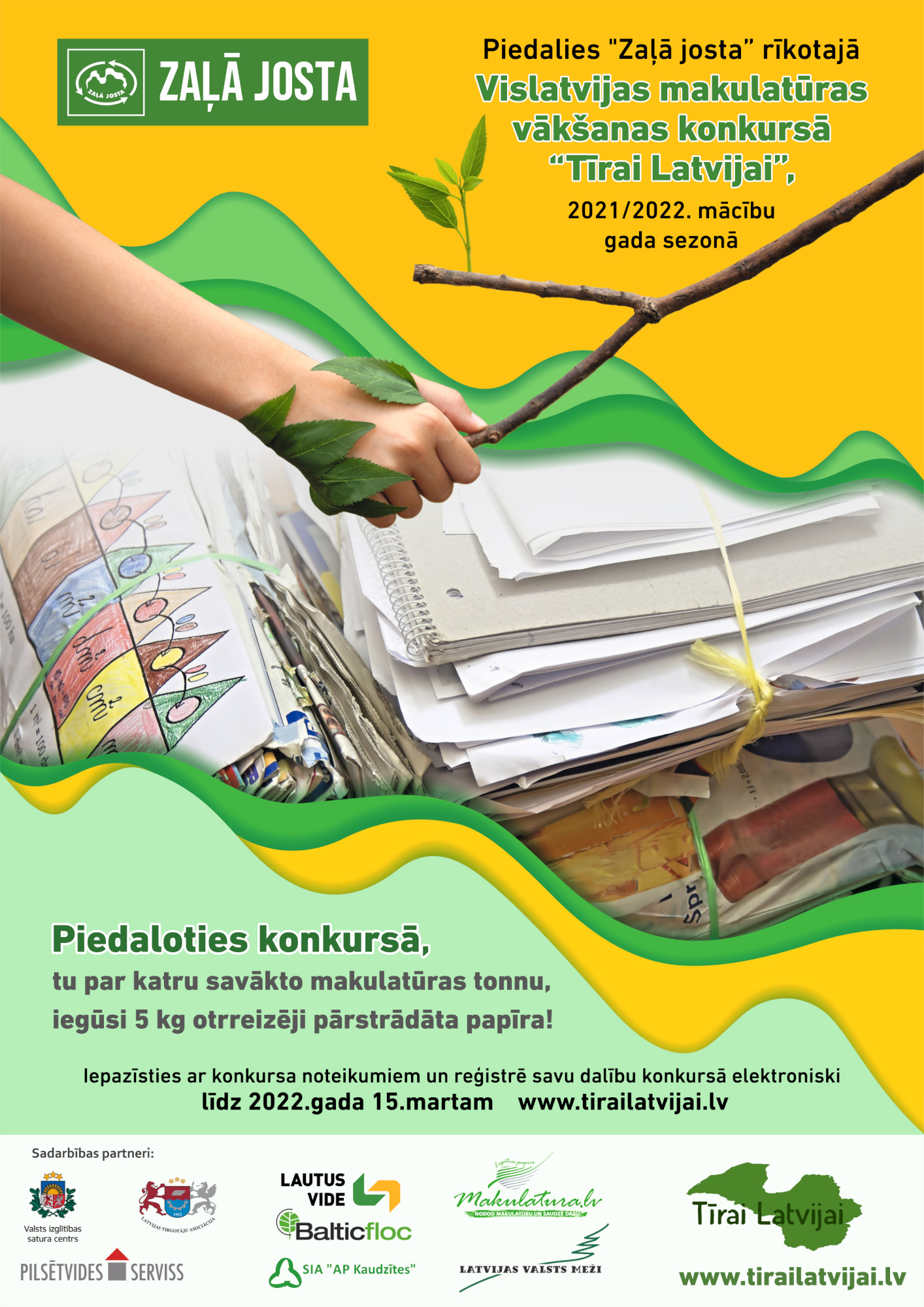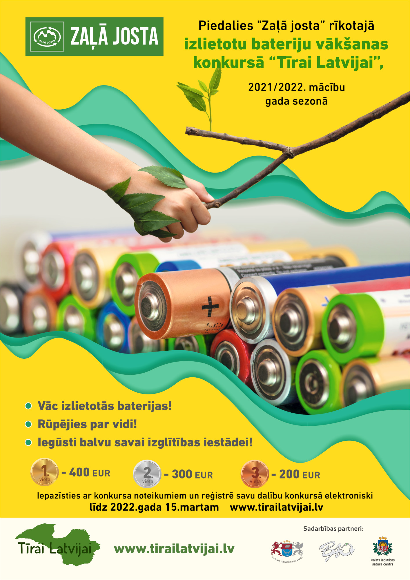 Konkursa mērķi– veidot izpratni, ka sabiedrība ar savu rīcību var samazināt pašu radīto atkritumu apjomu; parādīt praktiskas vides stāvokļa uzlabošanos un dabas resursu taupīšanas iespējas, rosināt bērnus caur praktisku darbību ikdienā samazināt apkārtējās vides piesārņojumu ar videi bīstamiem atkritumiem.