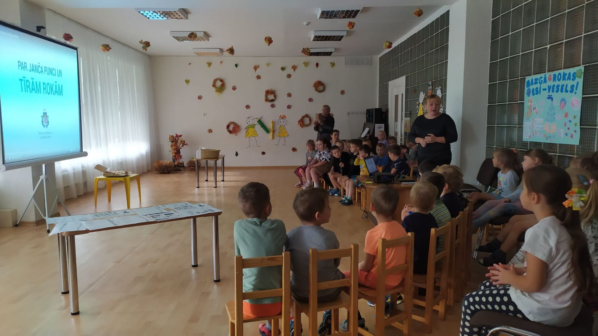 DVV ,,Pasaciņas” pirmsskolas audzēkņi arī piedalījās dažādās interaktīvās aktivitātēs. Grupu skolotājas nodarbības ietvaros ar bērniem pārrunāja par roku mazgāšanas nozīmi un lietderību. Bērni noskatījās multfilmu par “Janča punci un tīrām rokām”, uzzināja par nepieciešamību mazgāt rokas un pareizu roku mazgāšanas secību, kā arī par to, kas notiek, ja nemazgā rokas.